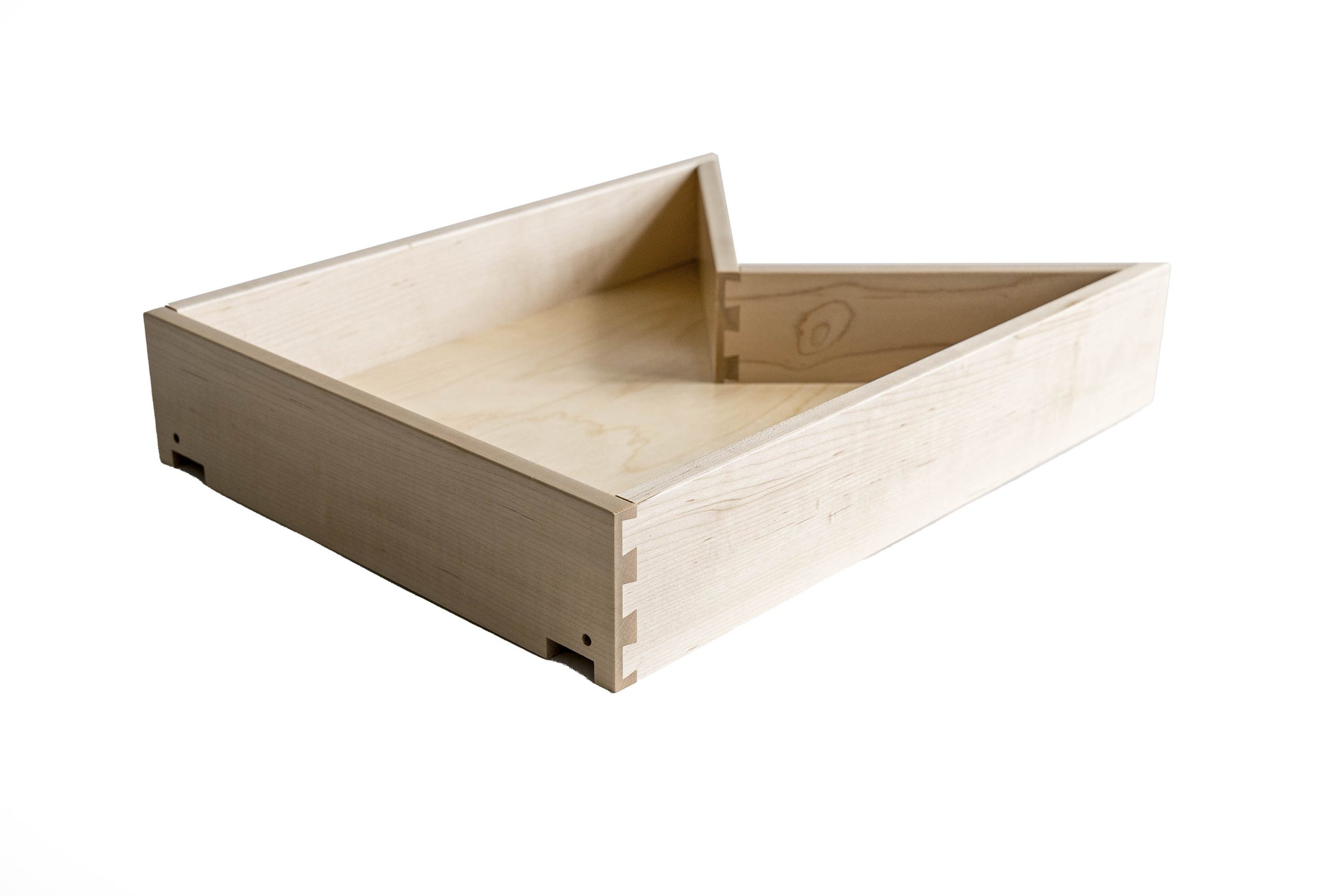 Our dovetail drawer boxes are made of 5/8″ solid wood. These drawer boxes can be used by themselves or fitted with a drawer front that matches your cabinet doors. Start your customization process below by selecting the dimensions and options you need.