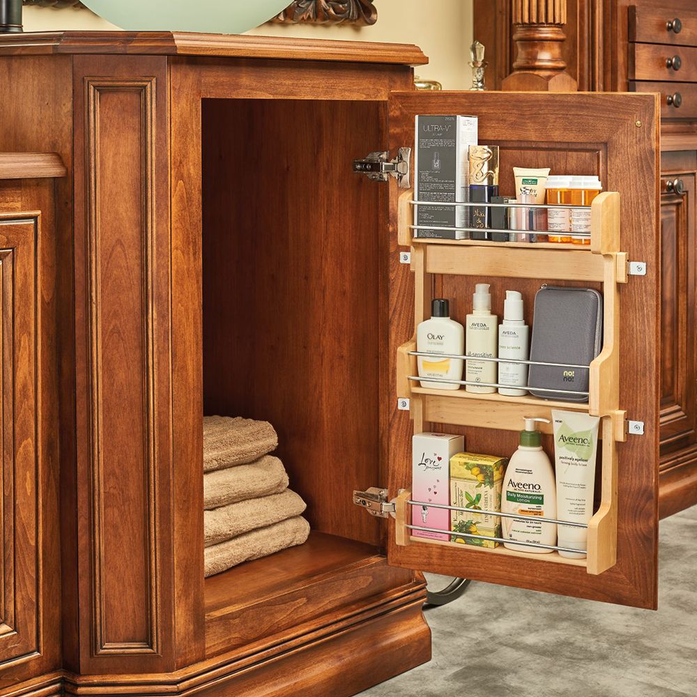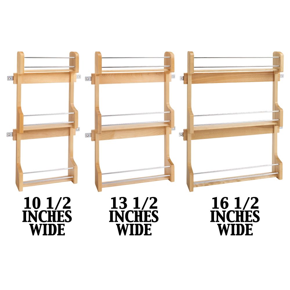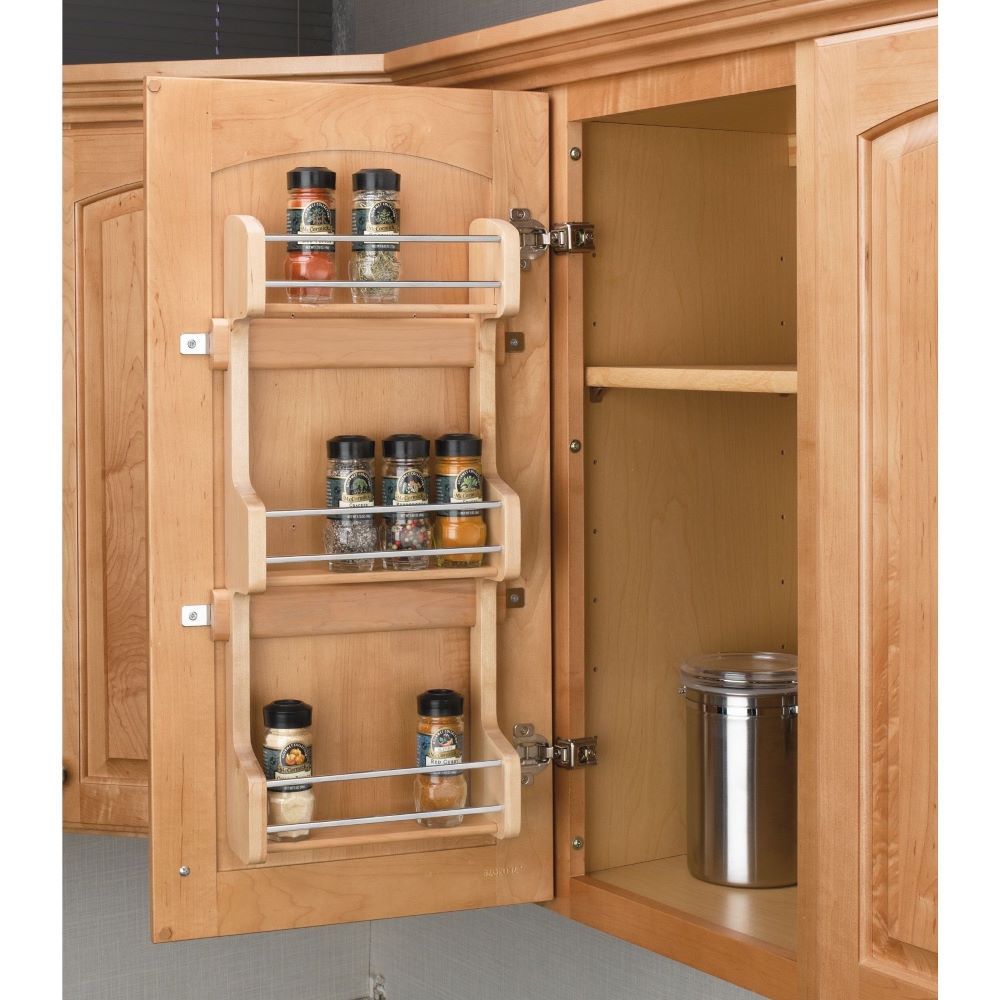 This attractive maple hardwood spice rack keeps spices within easy reach. The door mount brackets provide 5″ of side to side adjustment to ensure that screws mount into door stiles. It installs with just four screws
